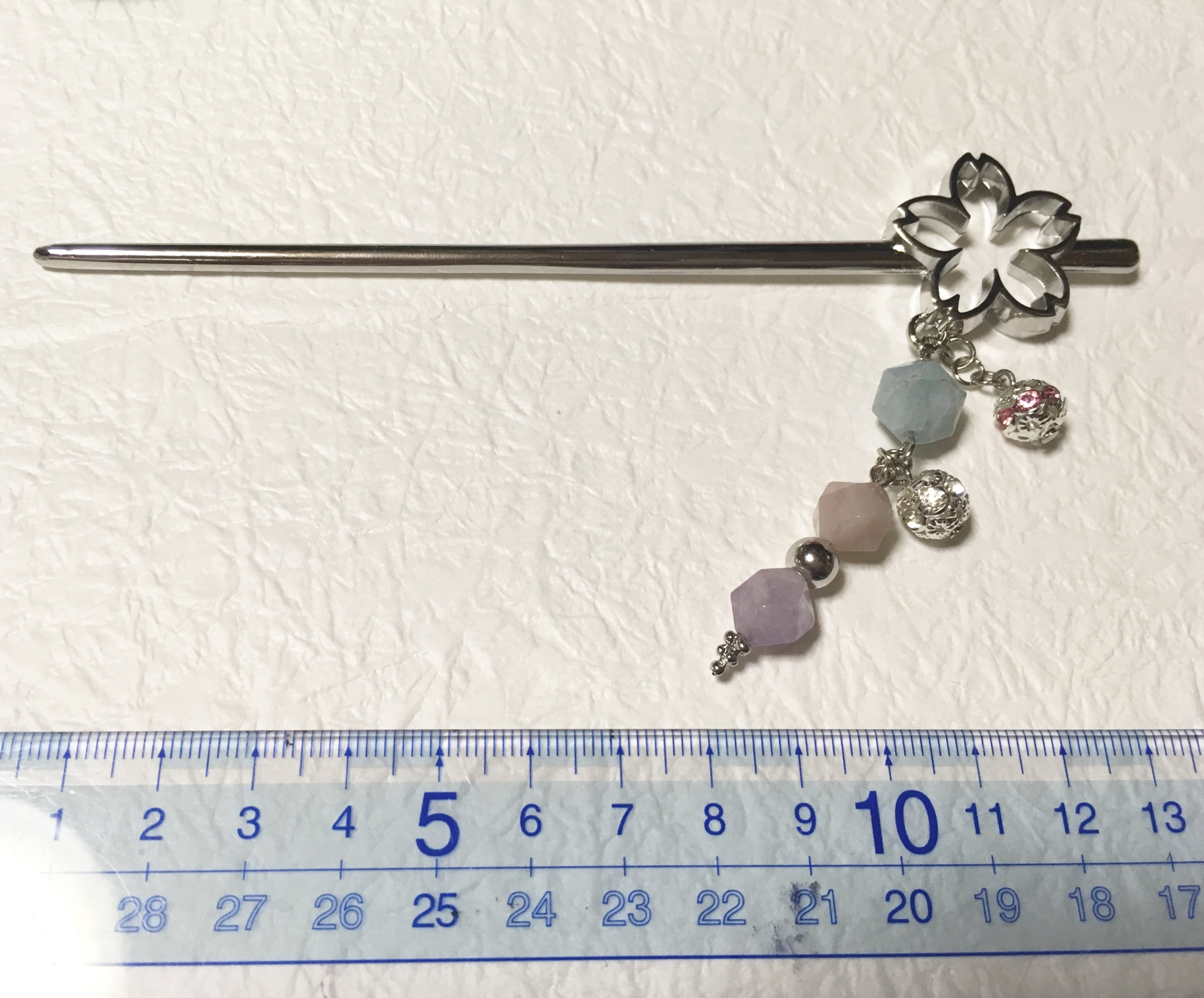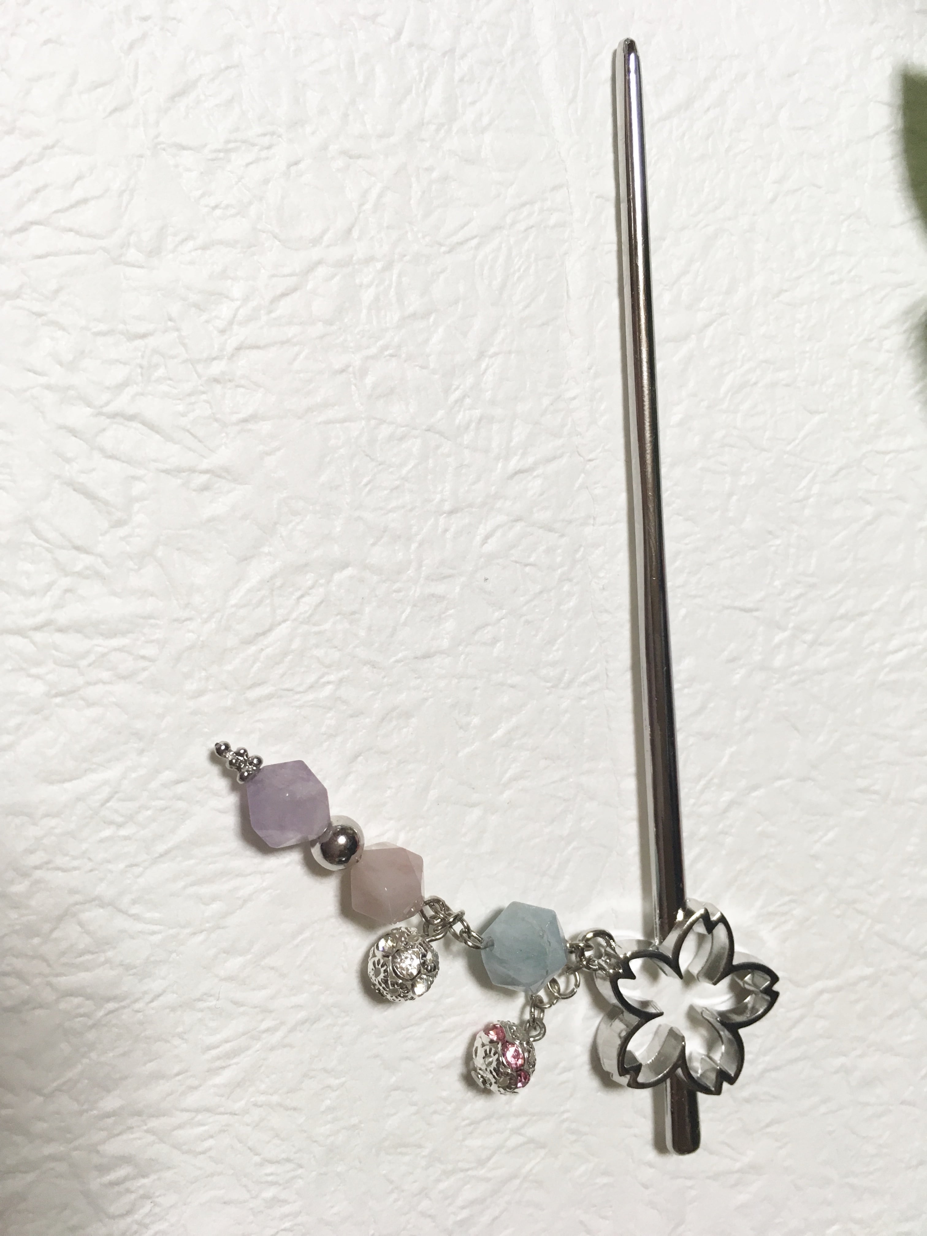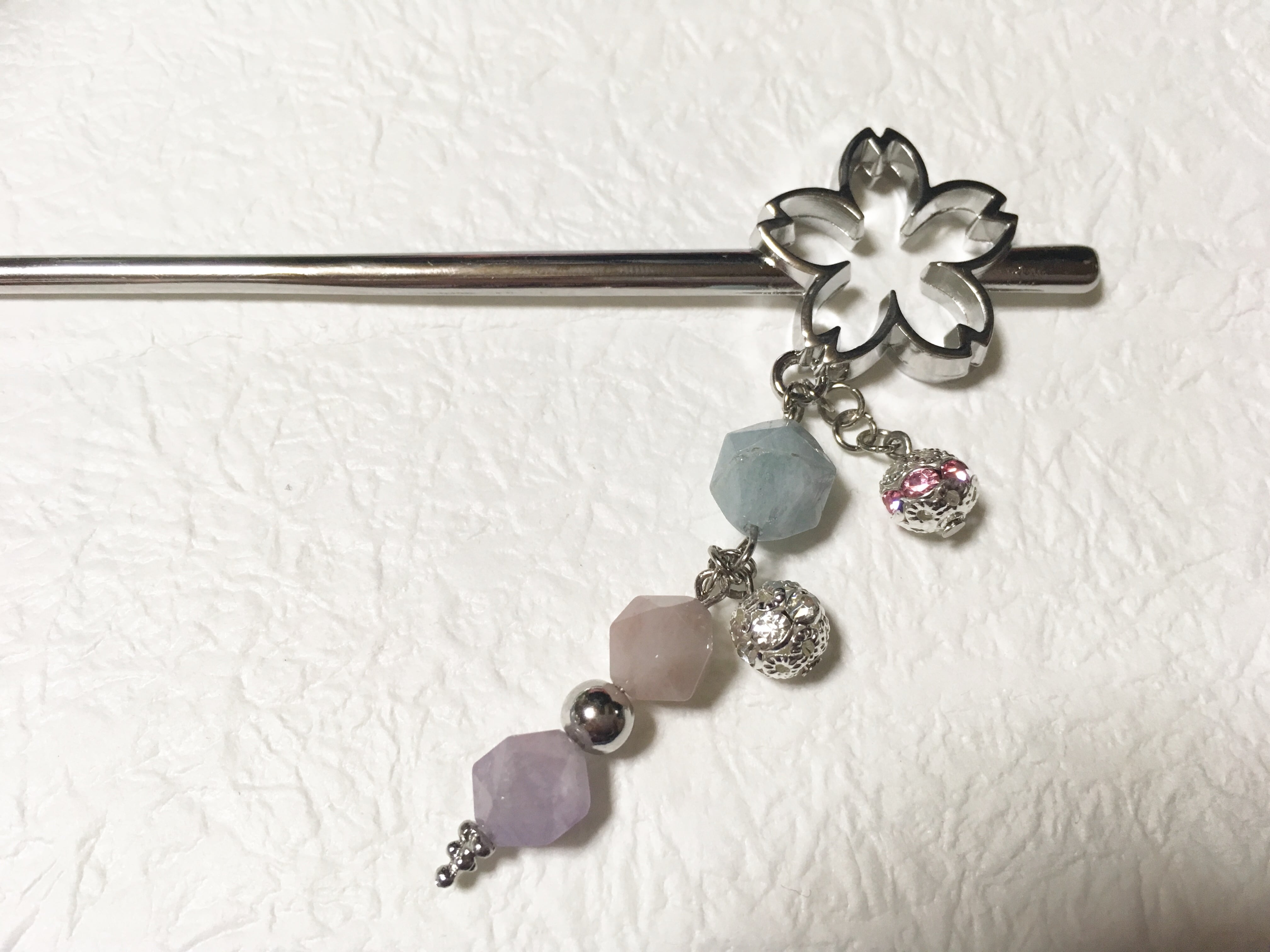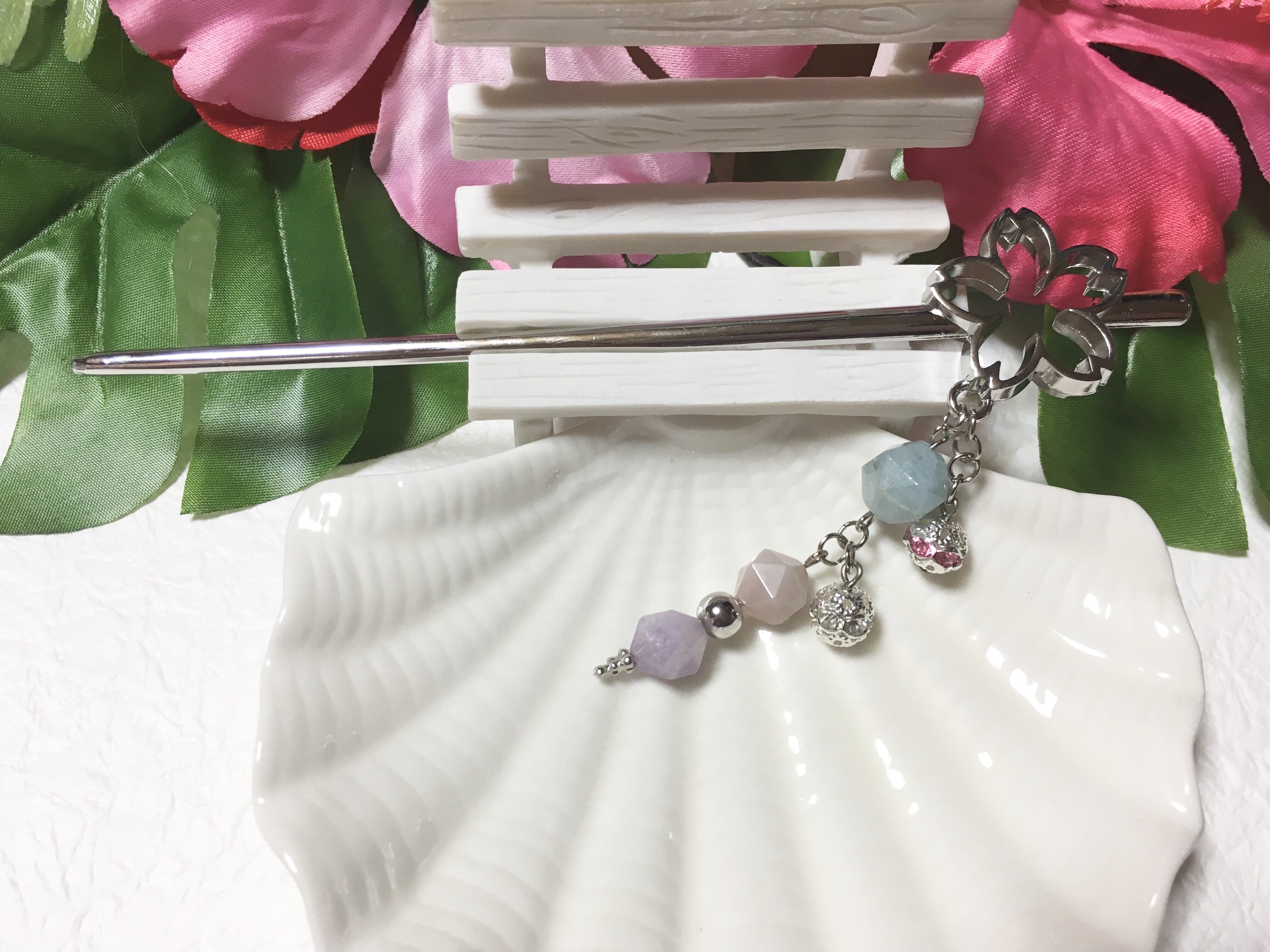 天然石アクアマリン、ローズクオーツ、ラベンダーアメジストのかんざし